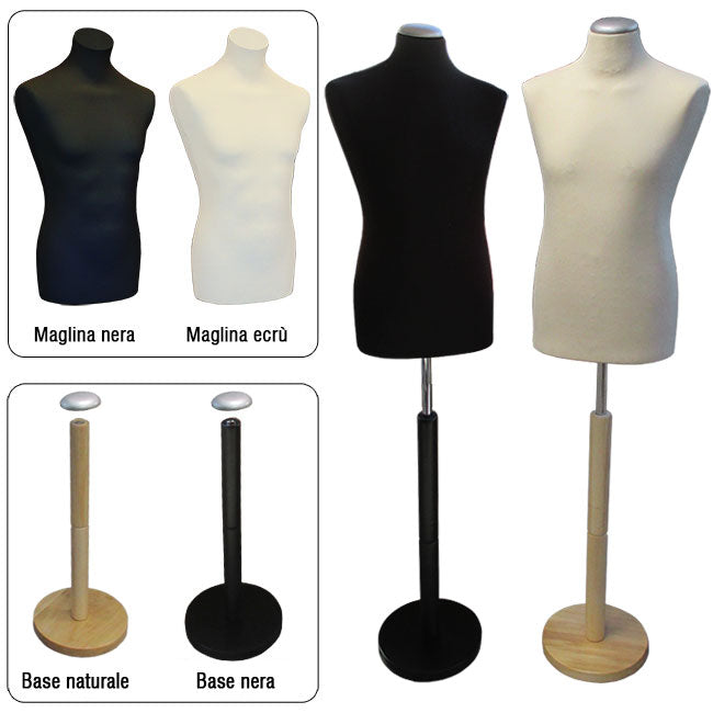 - Busto sartoriale uomo, in polistirolo con base in legno, regolabile in altezza.
