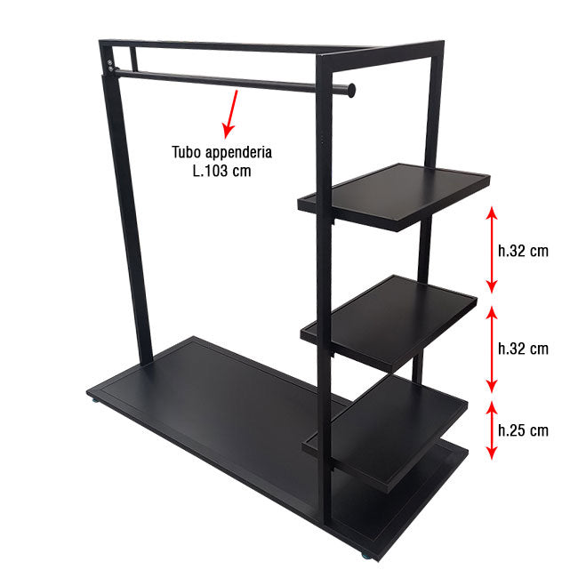 Espositore / Stander per esposizione con base , pianetti e tubo appenderia.