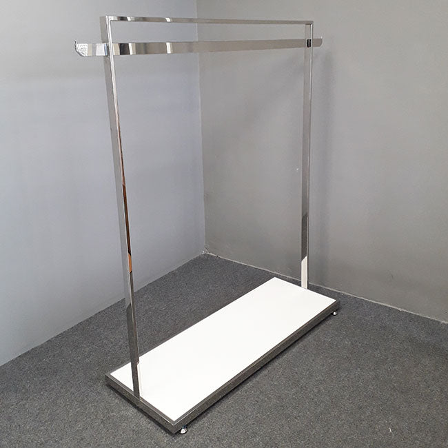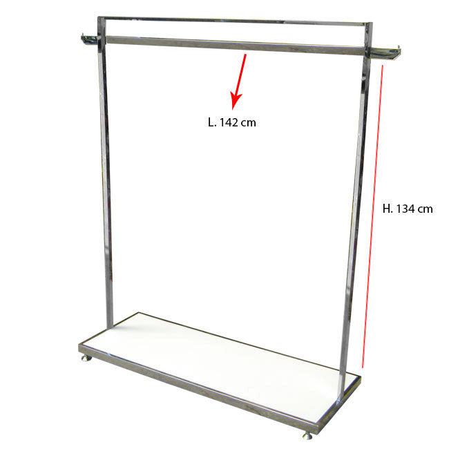 - Espositore / Stender con base in legno bianco lucido e tubo appenderia per esposizione negozio.