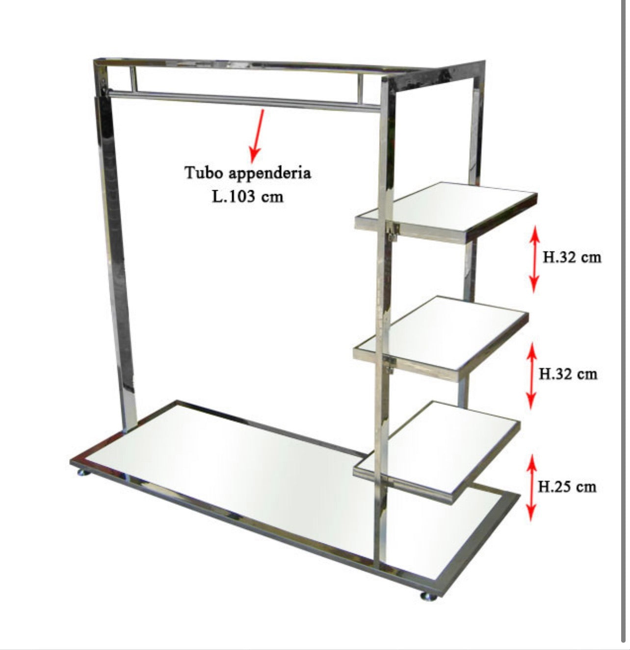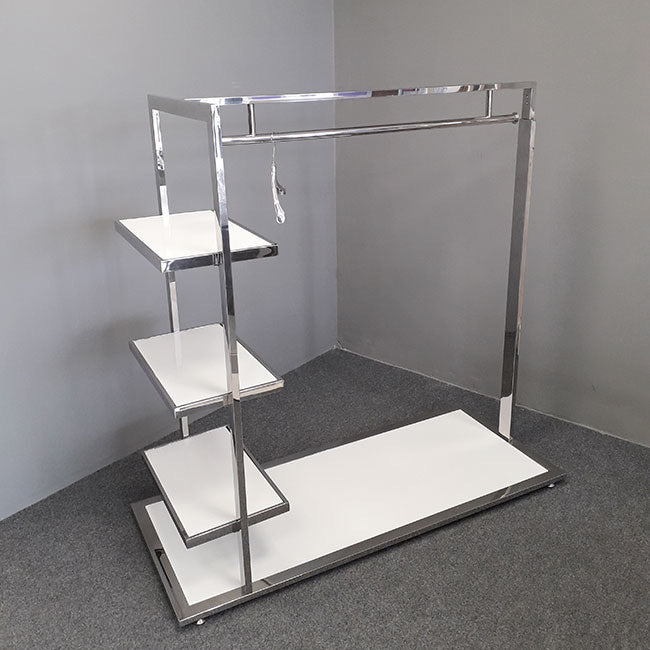 Espositore / Stander per esposizione con base , pianetti e tubo appenderia.